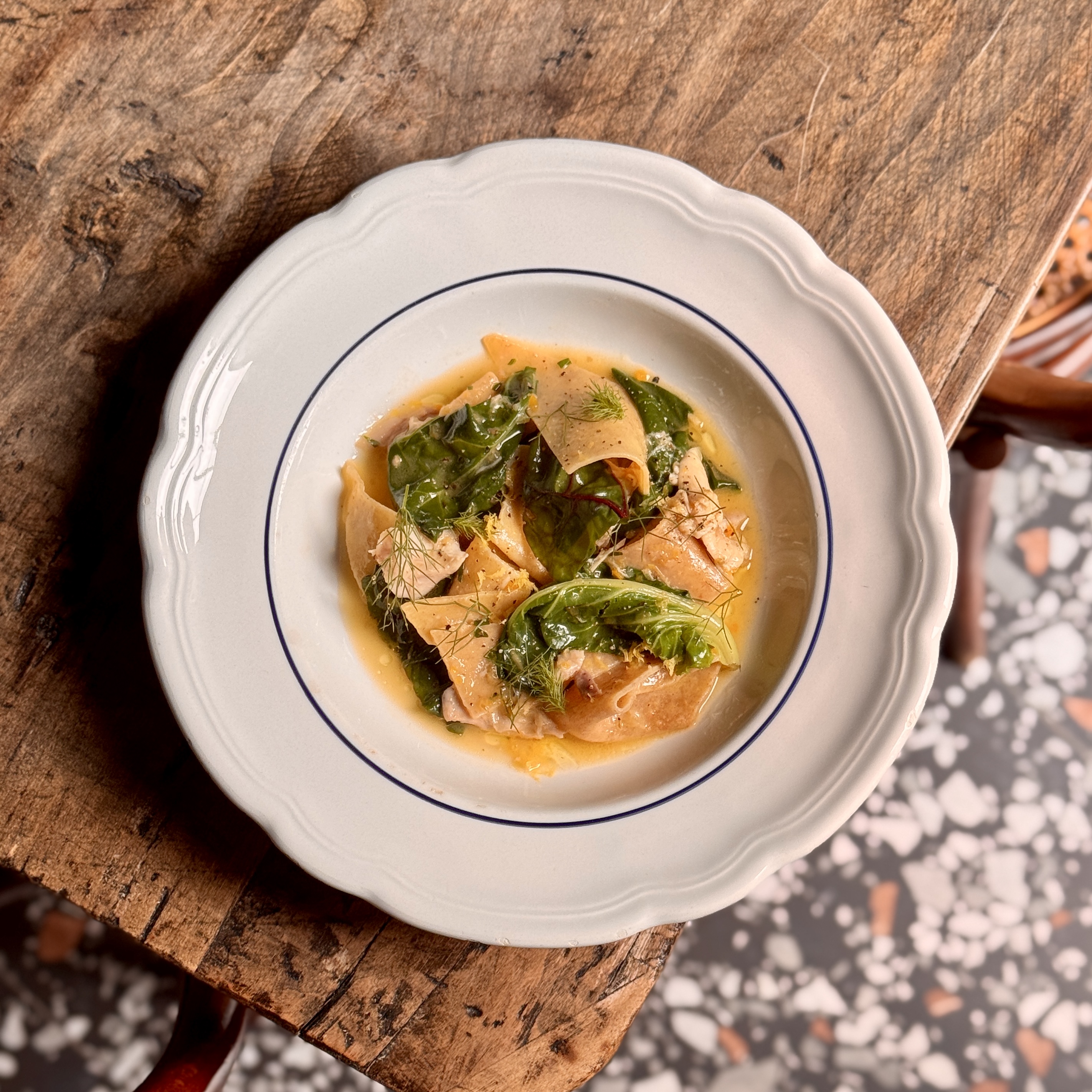 Le paste all’uovo, le basi e le salse sono preparate in Osteria, con ingredienti di prima qualità. Il pane che serviamo nasce dal lavoro attento di fornai che utilizzano lievito madre e seguono con dedizione la filiera del grano. L’olio che portiamo in tavola proviene da frantoi regionali che condividono i nostri valori. La carta dei vini è il risultato del lavoro di vignaioli artigiani che producono in modo naturale, senza manipolazioni in cantina e con profondo rispetto per il territorio.